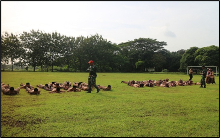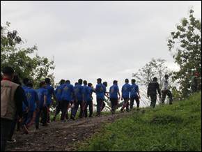 Selain diajarkan ketegasan dan kedisiplinan yang cukup ‘mengagetkan’ bagi kami, di Yonif Kala Hitam kami juga ada kegiatan lain yang seru, outbond dan Fun games! Kami melakukan hiking sepanjang kurang lebih 14 KM! menyusuri jalan-jalan perumahan, Perkebunan, menaiki bukit, melewati bendungan, hutan-hutan, bahkan menyebrang Sungai!! Di akhir perjalanan, kami berkumpul bersama untuk fun games.